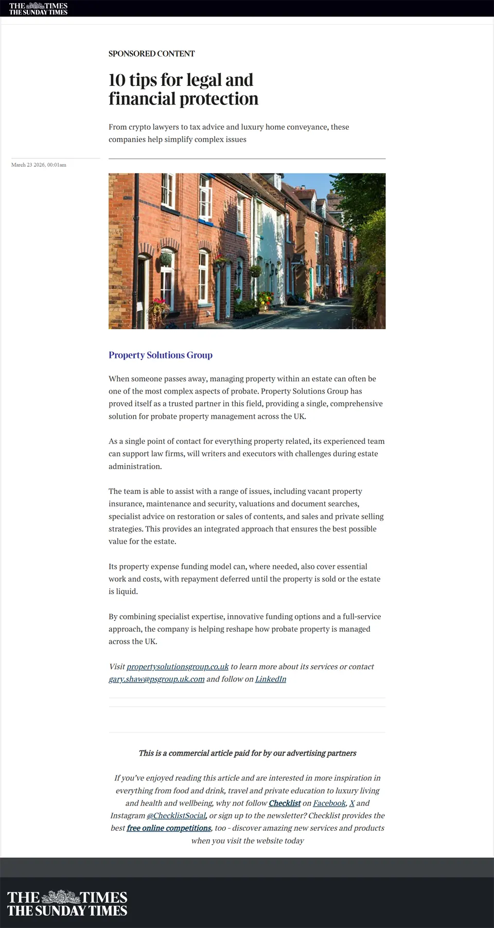 You can read recent media items concerning Property Solutions Group. Click + to open an article.